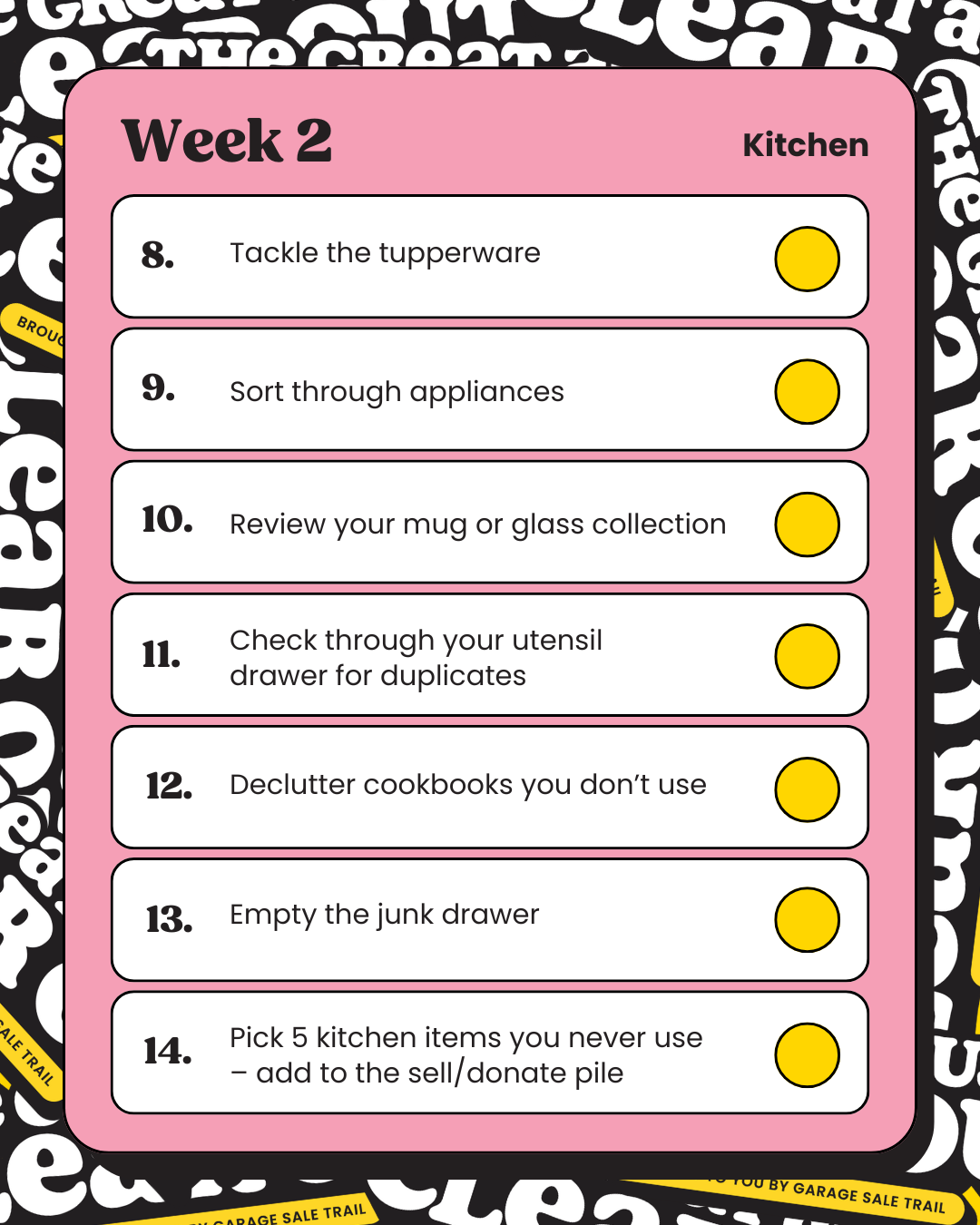 The Great Aussie Clear Out is a free 31-day decluttering challenge to help you clear space, reduce waste and get ready for Garage Sale Trail on 8–9 & 15–16 November.